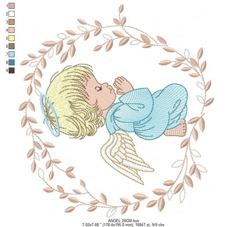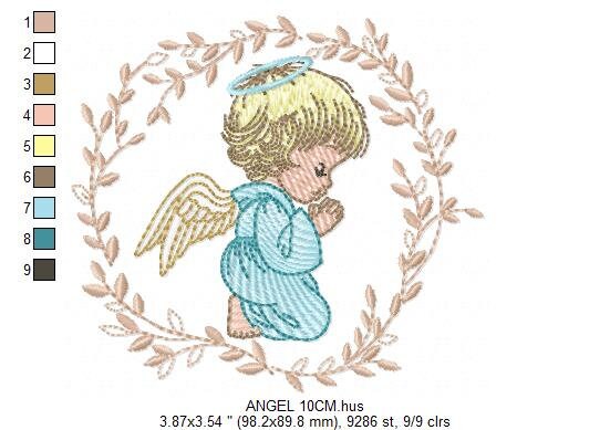 Angel embroidery designs - Baby girl with laurel frame machine embroidery pattern - Girl with wings file - Instant digital download pes jef