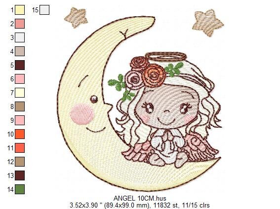 Angel embroidery designs - Girl in the moon embroidery design machine embroidery pattern - Angel with moon embroidery file pes download