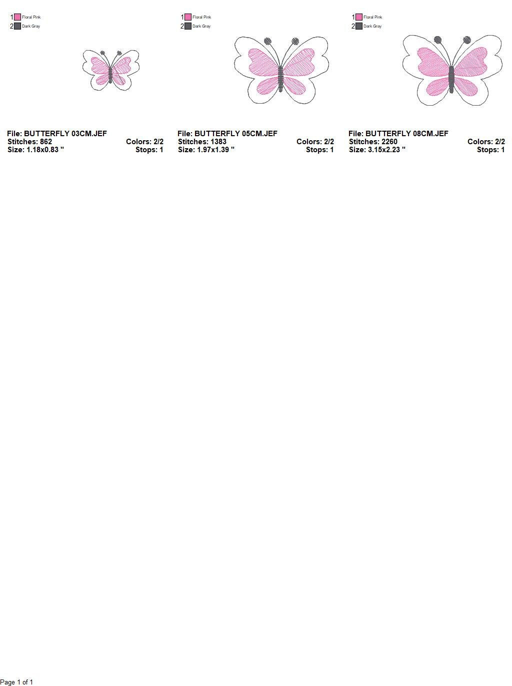 There are 3 sizes included for each design, please check the information under the pictures for the precise sizes of each design, stitch count, color changes and etc.
