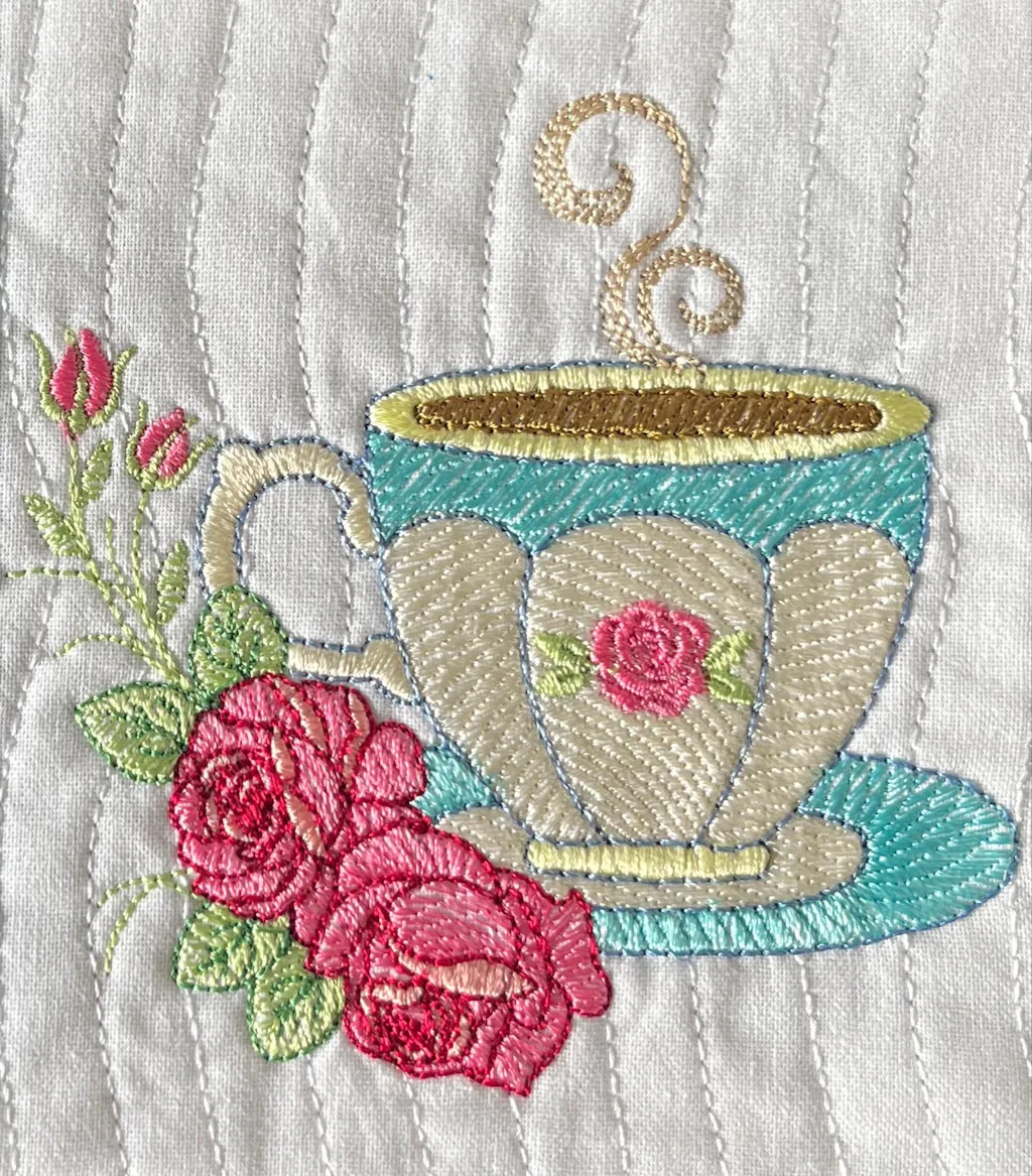 Coffee cup embroidery design - Tea Mug with roses embroidery designs machine embroidery pattern - Kitchen Towel file - Instant download pes