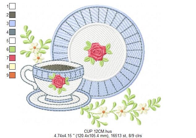 Coffee cup embroidery design - Tea Mug embroidery designs machine embroidery pattern - Kitchen embroidery file - Apron tea towel plate pes