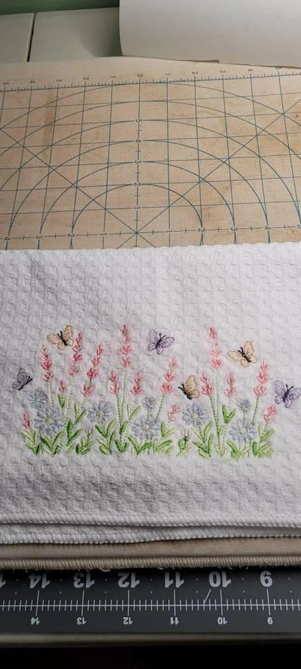 Flower garden embroidery design - Lavender and daisies flowers butterflies machine embroidery pattern - Kitchen Towel - Instant download