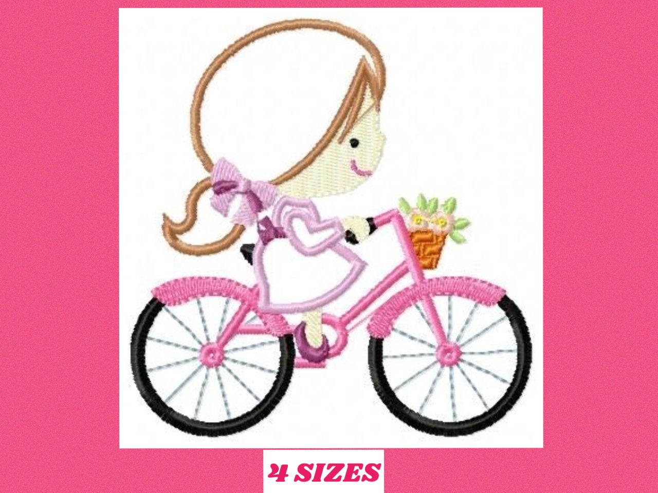 Girl embroidery designs - Girl with bike embroidery design machine embroidery pattern - girl applique design - baby embroidery bike applique