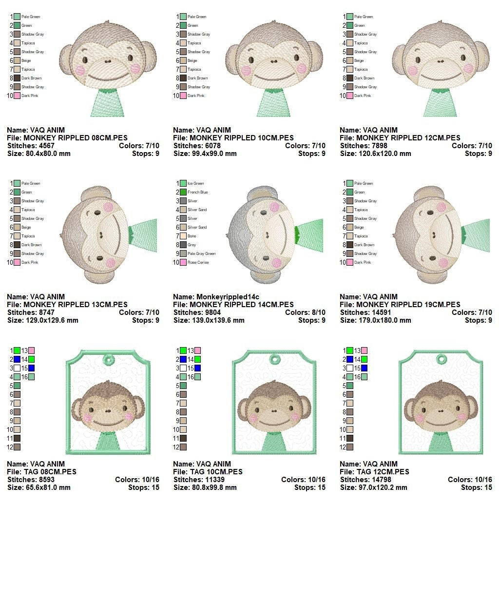 This is a digital download machine embroidery design of a MONKEY, instant download.