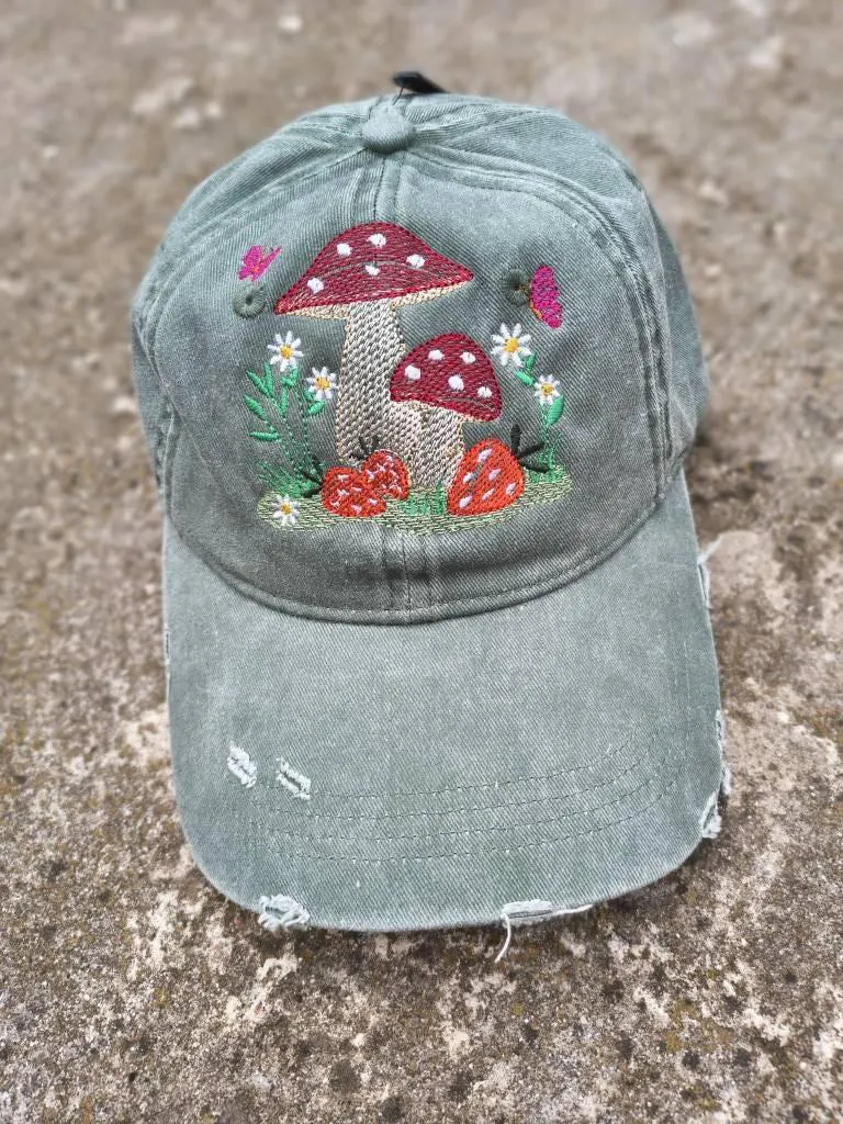 Mushroom with daisies and strawberries embroidery designs - Forest Toad with butterflies machine pattern - Kitchen Towel - Instant download