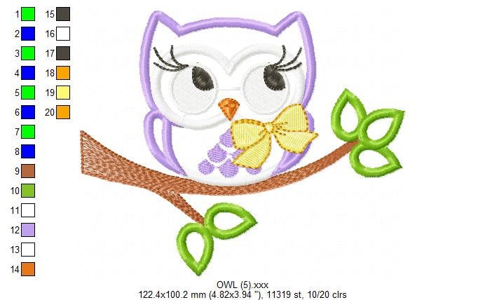 This is a digital download machine embroidery design of OWL SET, applique design, instant download.