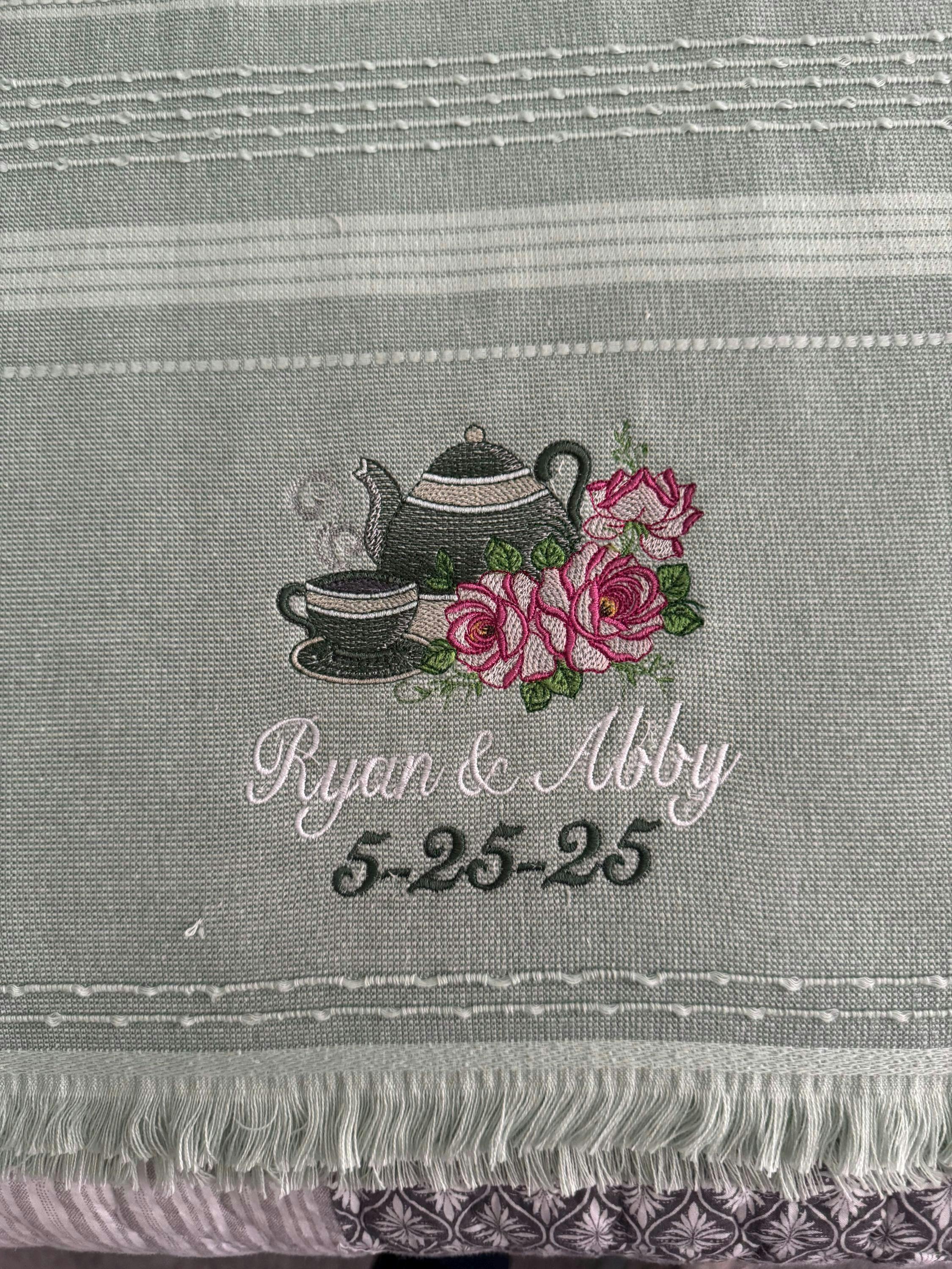This stitched out perfectly on a towel as part of a bridal shower gift! The bride loves tea & was thrilled to get it!