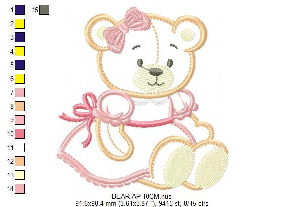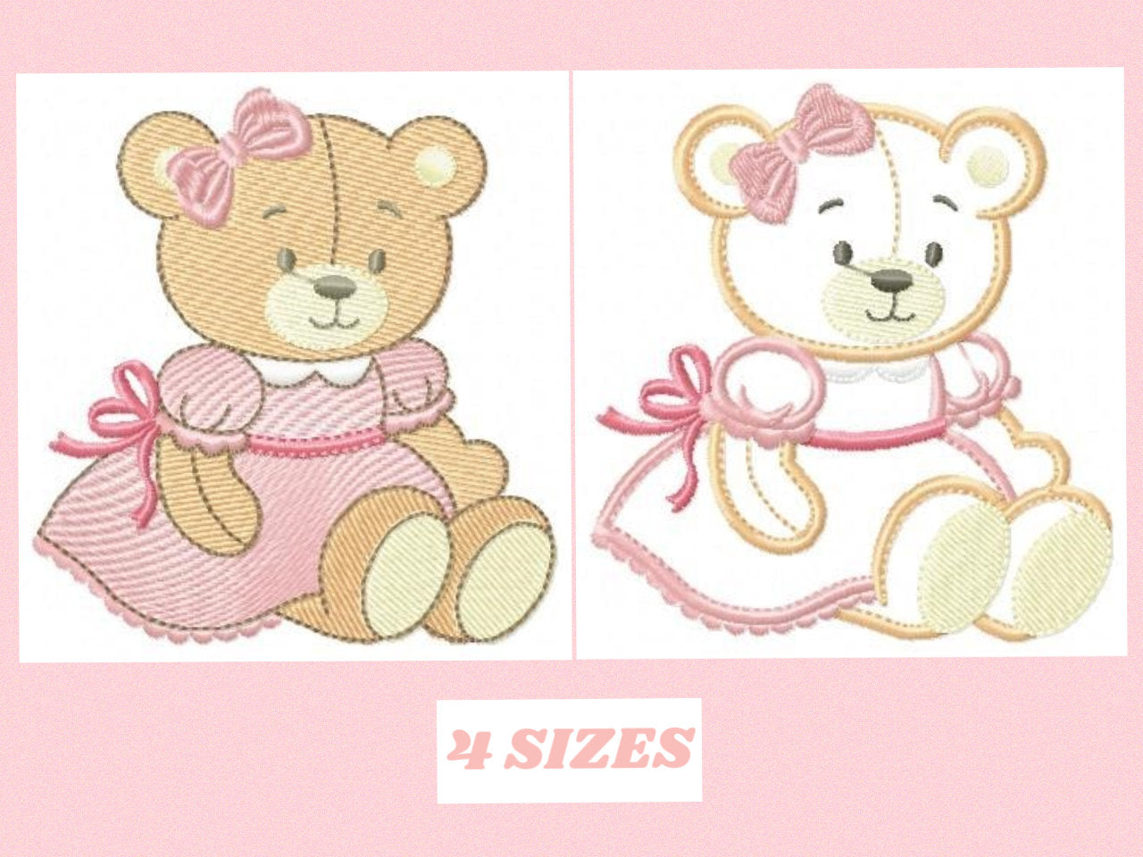 Bear embroidery designs - Baby girl embroidery design machine embroidery pattern - Female bear embroidery file - Teddy Bear applique design