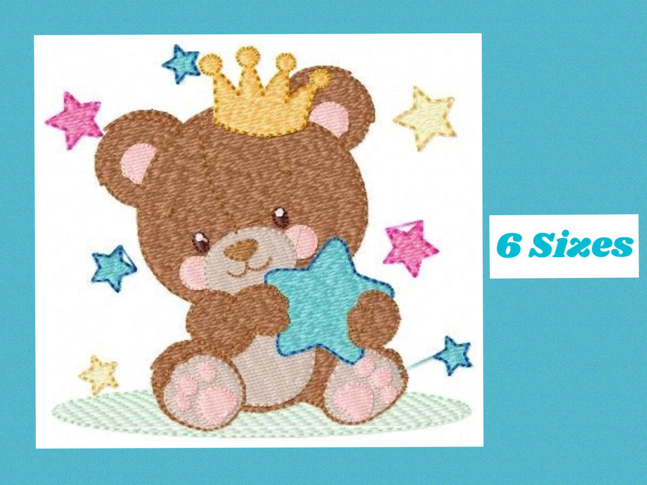 Bear embroidery designs - Bear with crown embroidery design machine embroidery pattern - Teddy bear embroidery file baby kid newborn nursey