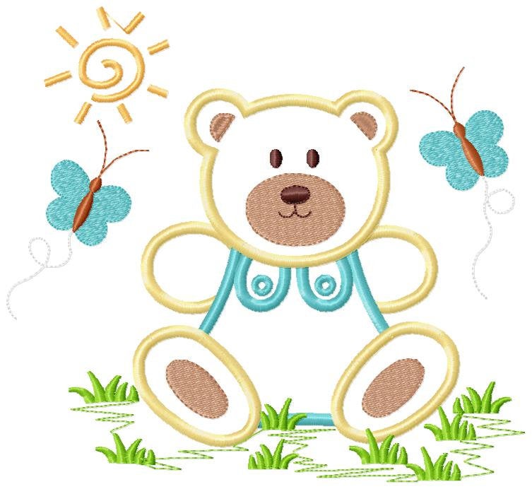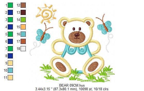 Bear with butterflies embroidery designs - Teddy Bear embroidery design machine embroidery pattern - Bear applique design - instant download