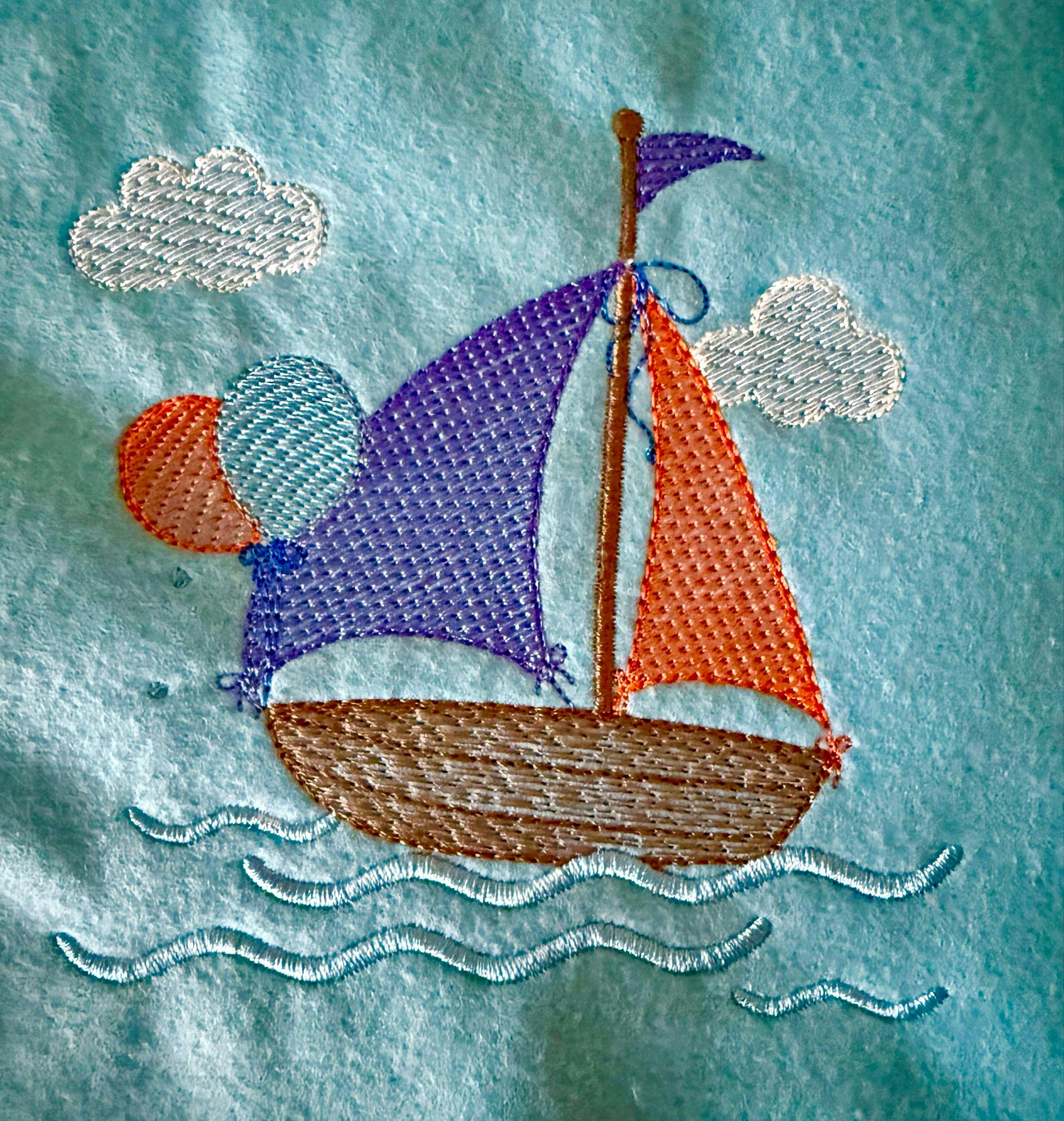 This is a digital download machine embroidery design of SAILBOAT, rippled design, instant download.