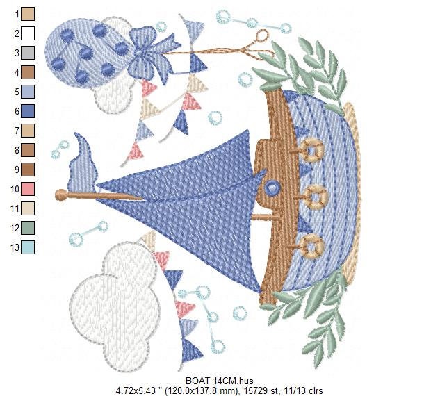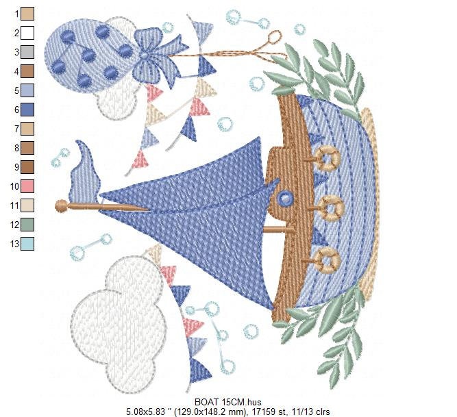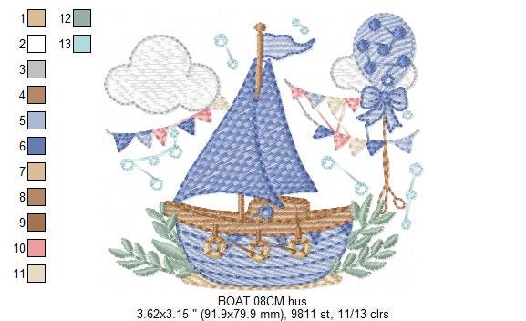 Boat embroidery designs - Sailboat embroidery design machine embroidery pattern - Nautical file instant download - Boat rippled design boy