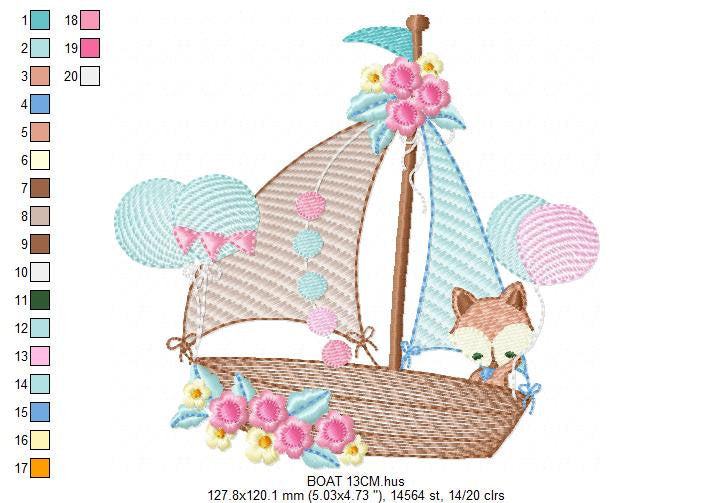 Boat embroidery designs - Sailboat embroidery design machine embroidery pattern - nautical file instant download - fox with balloons boy