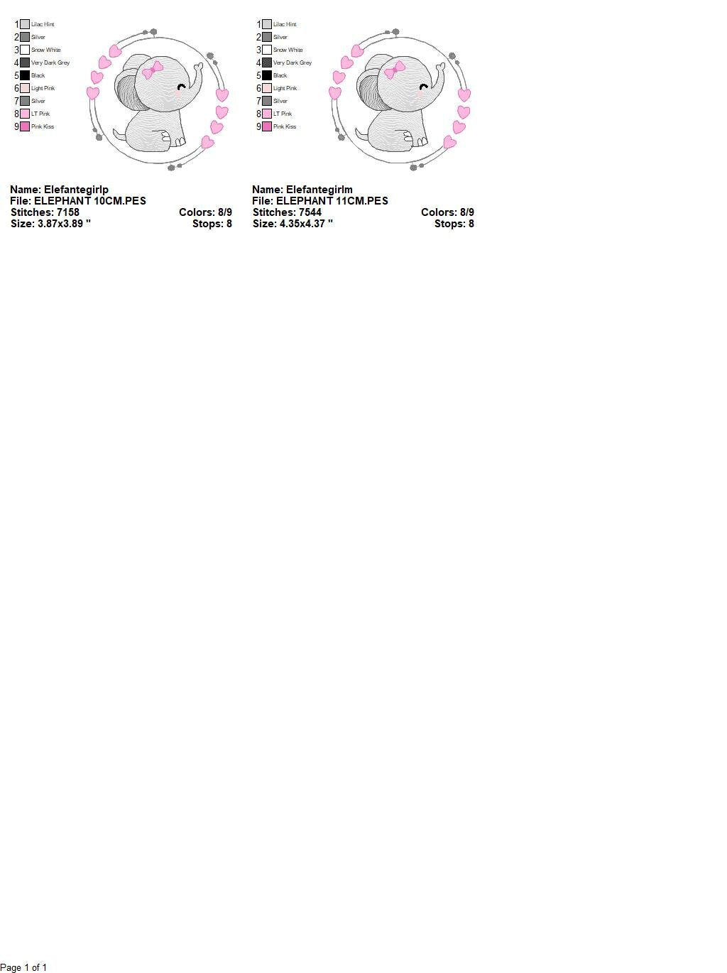 There are 2 sizes included for each design, please check the information under the pictures for the precise sizes of each design, stitch count, color changes and etc.