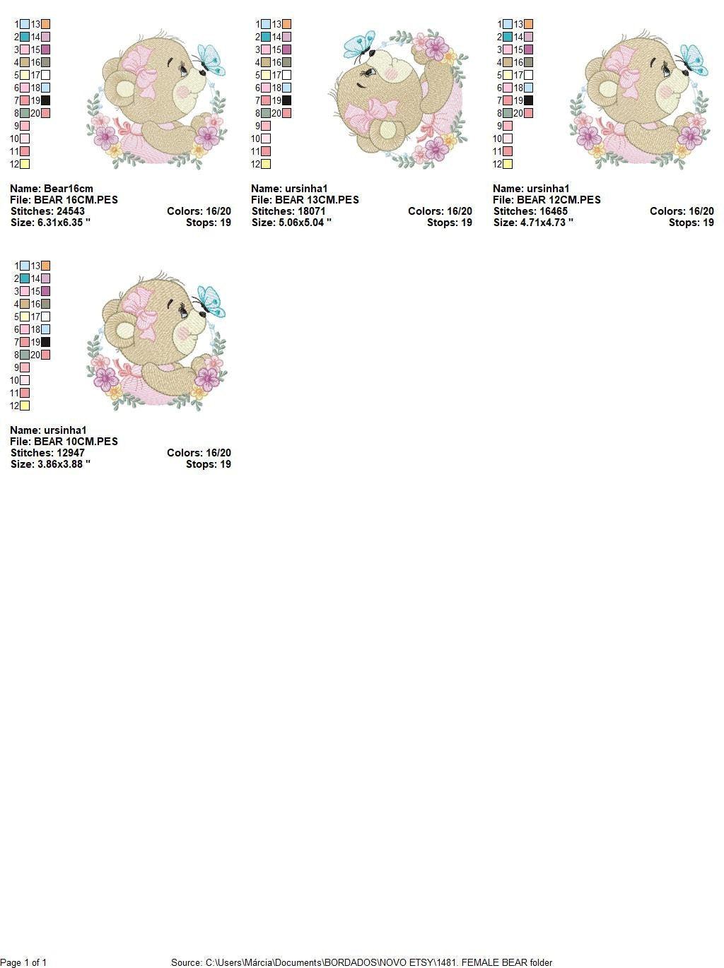Female Bear embroidery designs - Baby girl embroidery design machine embroidery pattern - Bear with butterfly embroidery file - digital file