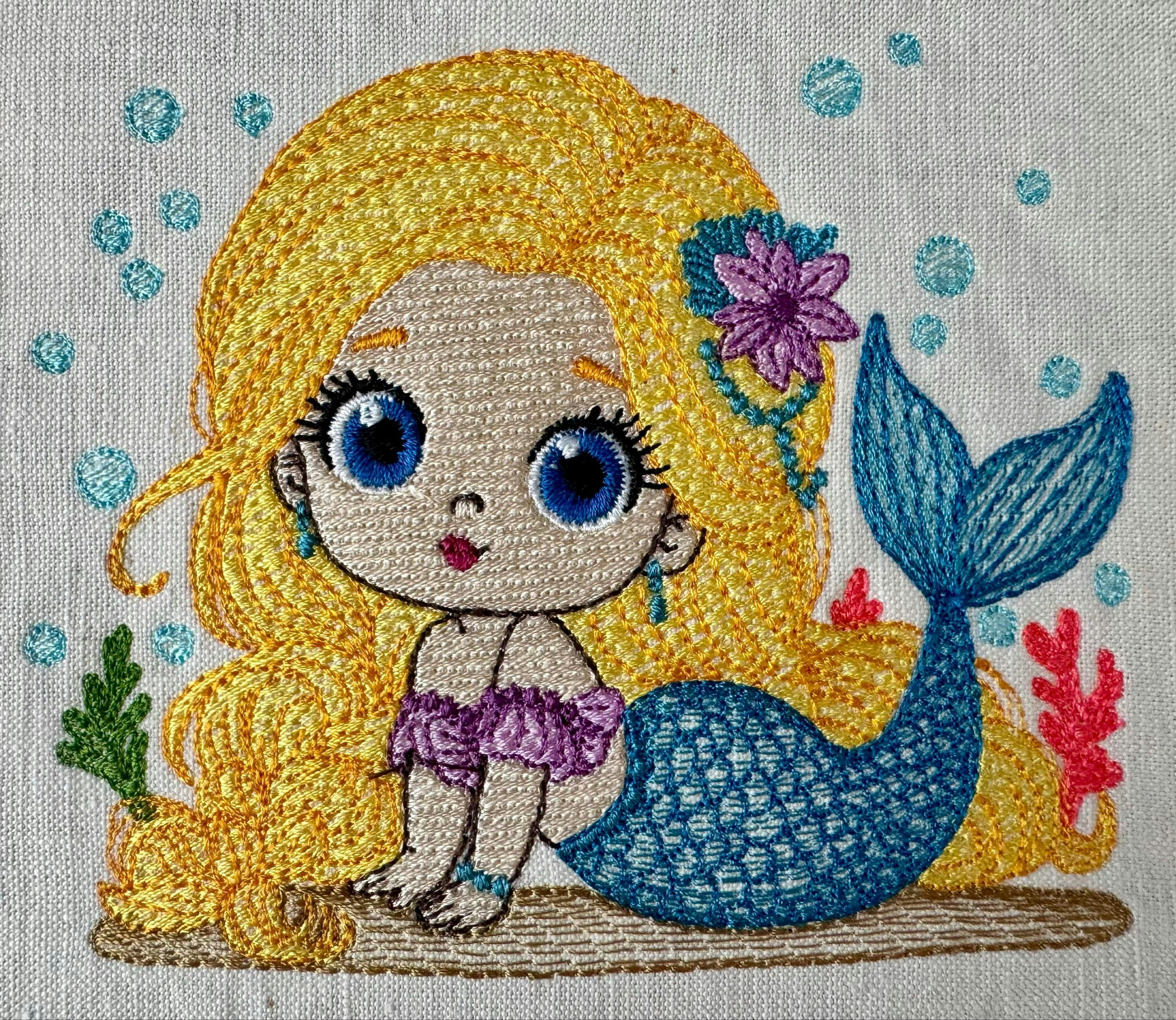 Mermaid embroidery designs - Princess embroidery design machine embroidery pattern - Mermaid rippled design Baby girl embroidery download