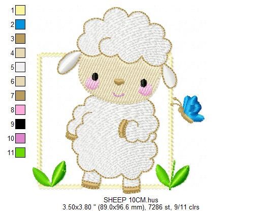 Sheep embroidery design - Lamb with butterfly frame machine embroidery pattern - Baby boy file - Farm ranch animal - Instant download pes