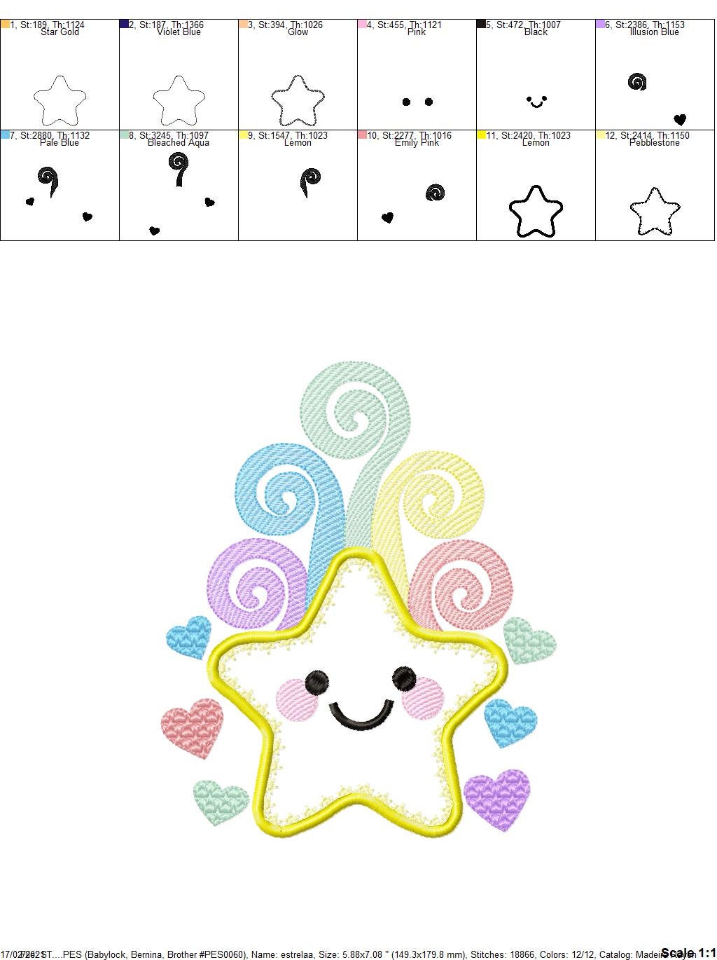 Star embroidery design machine embroidery pattern - Star applique design - Rainbow embroidery file - baby girl embroidery - instant download