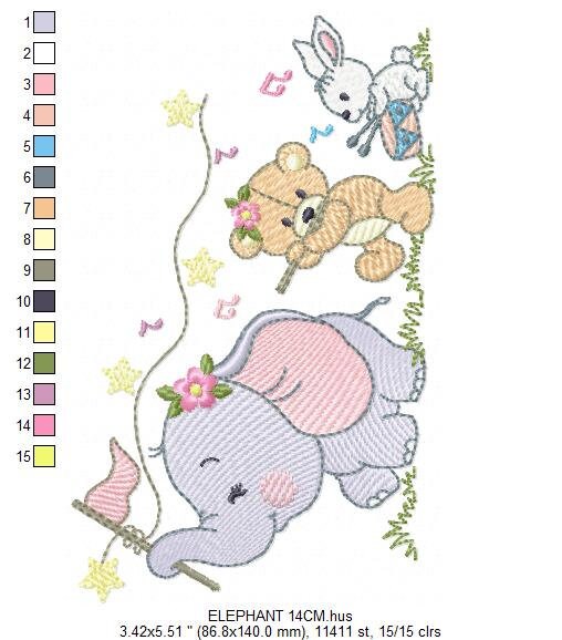 Animal band embroidery designs - Musical animals embroidery design machine embroidery pattern - Elephant embroidery file - Bear and Rabbit