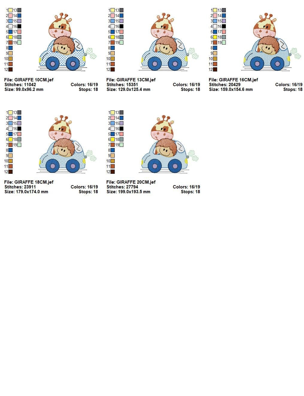 Animal in a car embroidery design - Giraffe and boy machine embroidery pattern - Baby boy embroidery file - Giraffe car - Instant download