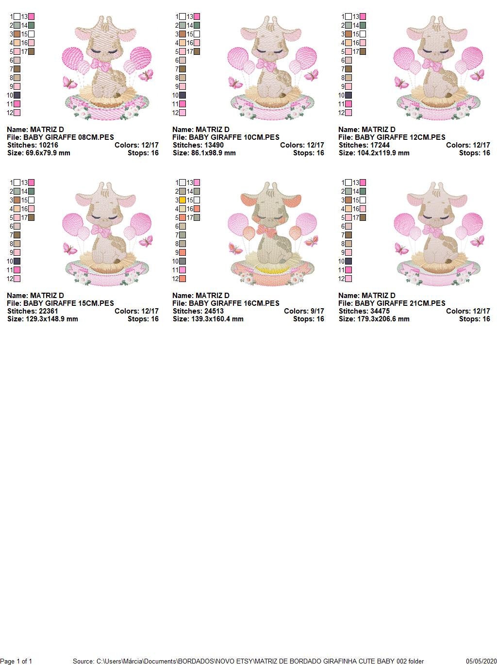 This is a digital download machine embroidery design of a BABY GIRAFFE, rippled design, instant download.