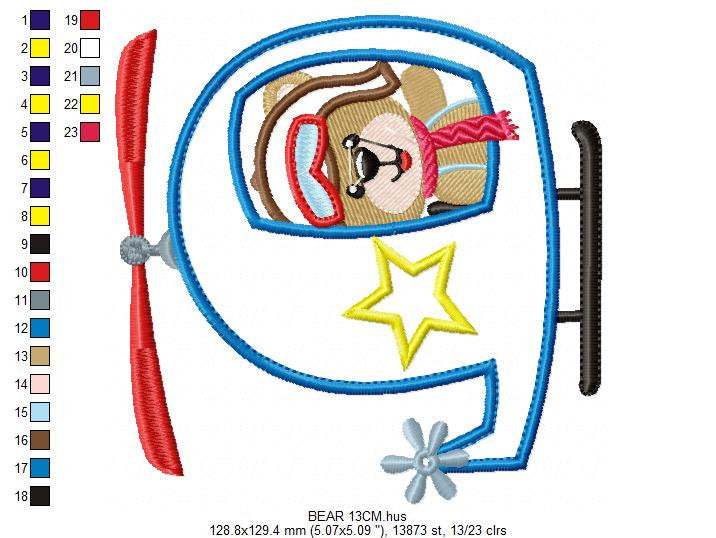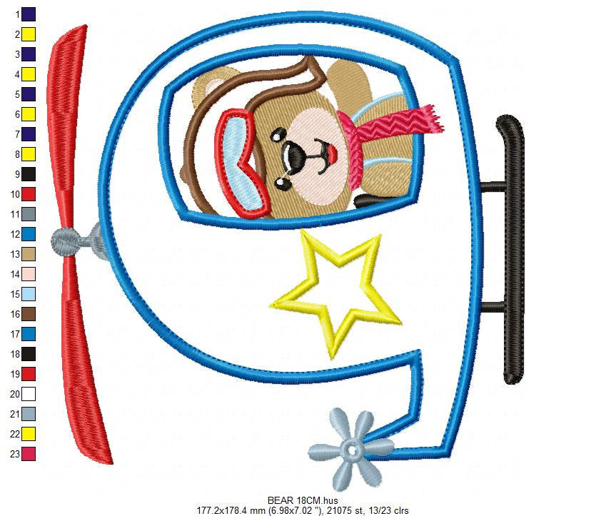 Bear embroidery designs - Helicopter embroidery design machine embroidery pattern - Animal embroidery file - helicopter applique design boy