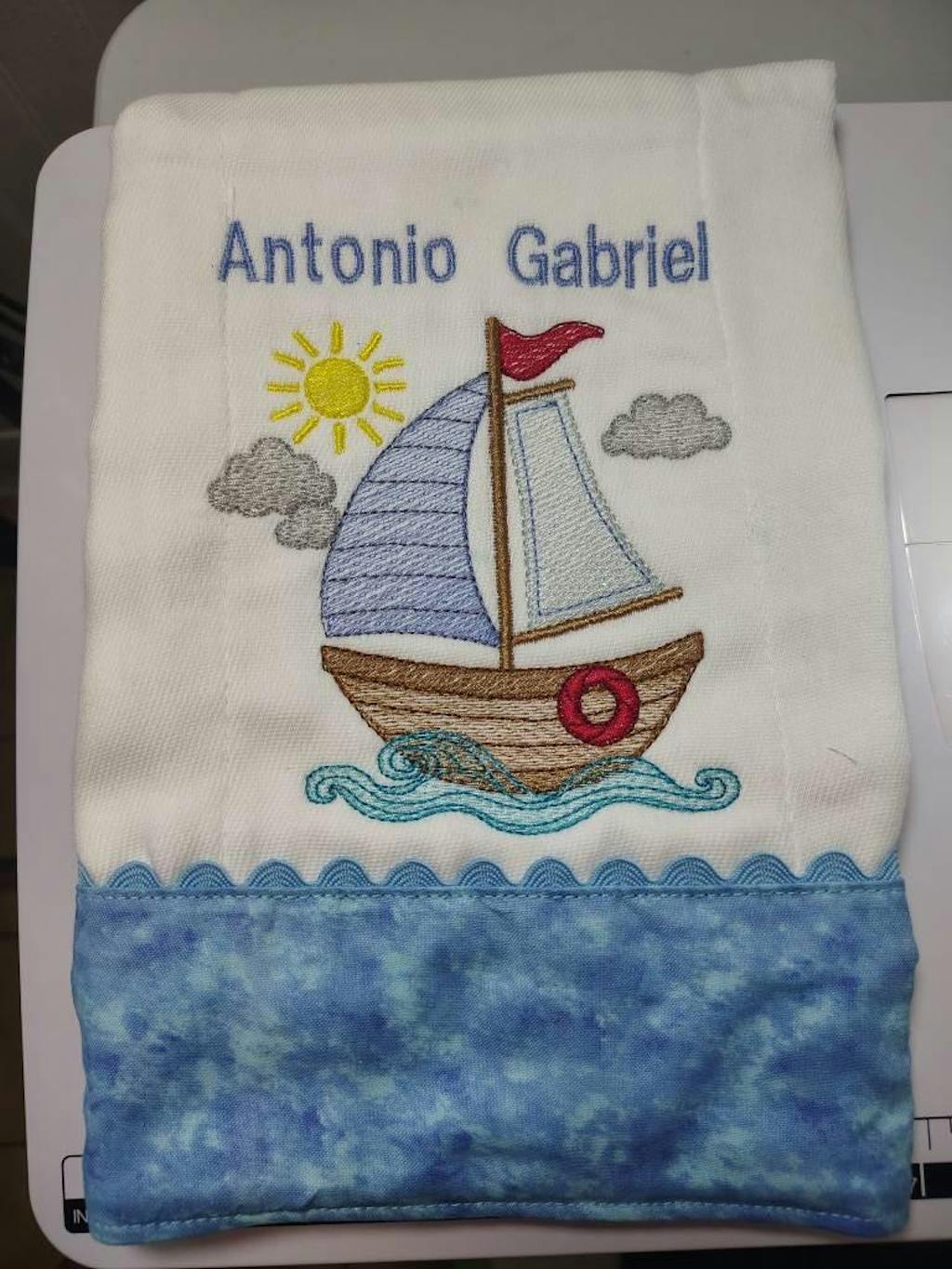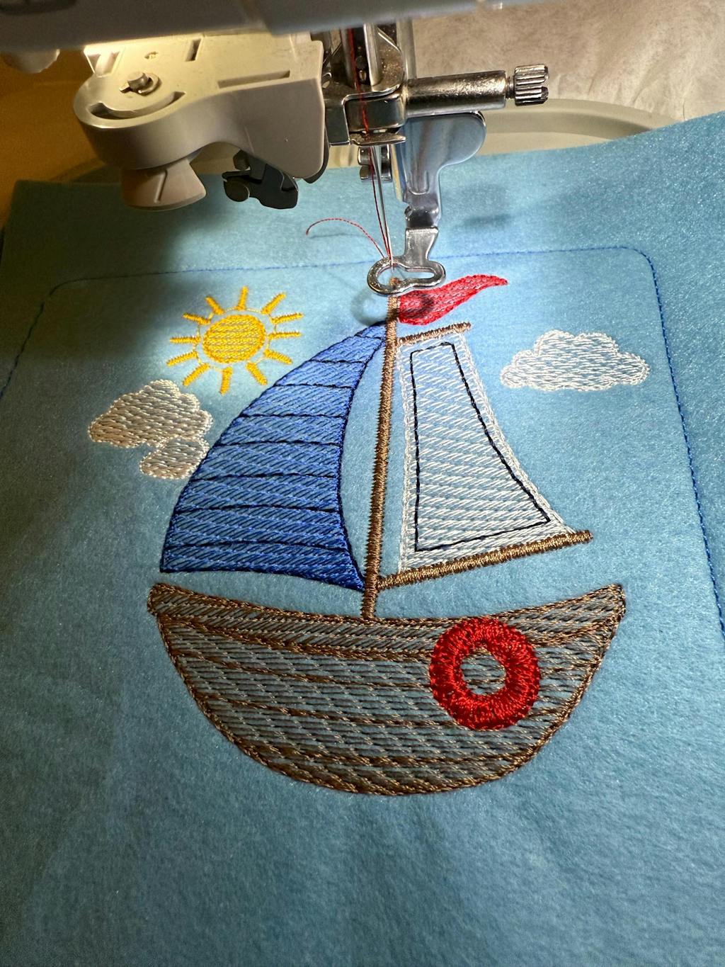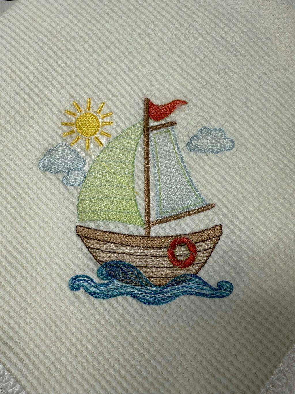 This is a digital download machine embroidery design of SAILBOAT, rippled design, instant download.