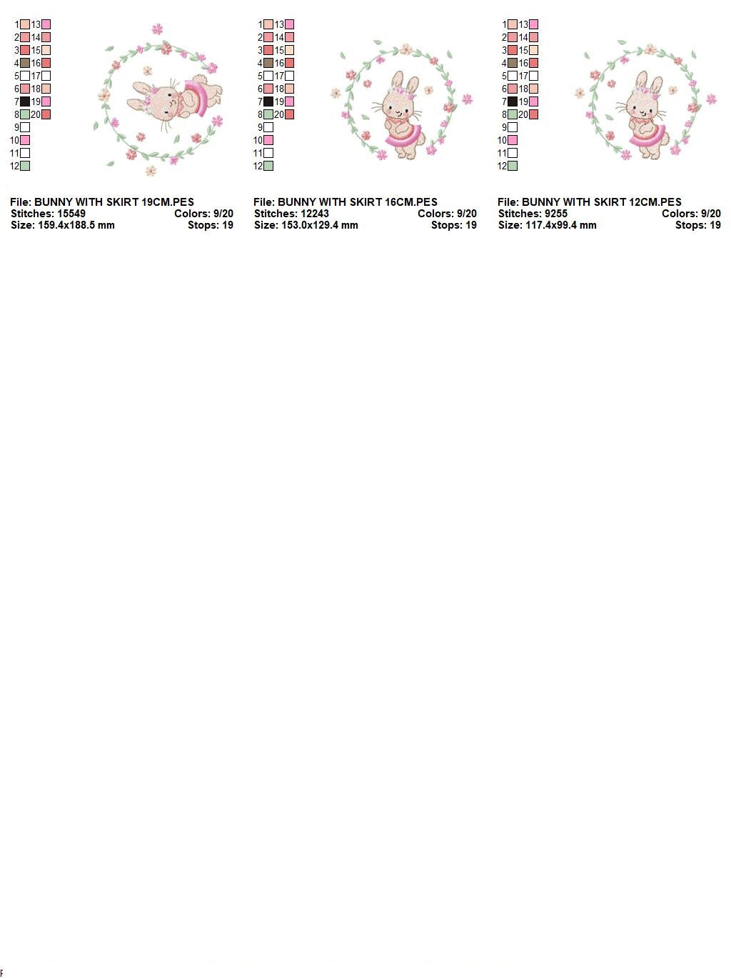 There are 3 sizes included for each design, please check the information under the pictures for the precise sizes of each design, stitch count, color changes and etc.