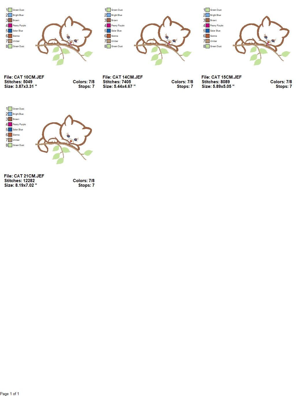 There are 4 sizes included for each design, please check the information under the pictures for the precise sizes of each design, stitch count, color changes and etc.