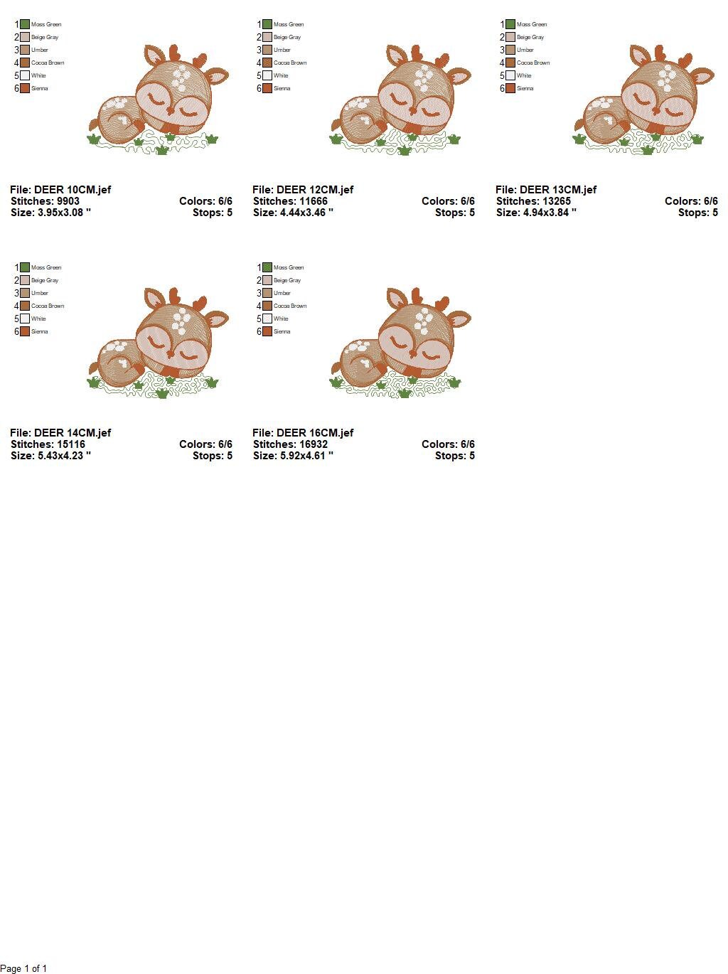 There are 5 sizes included, please check the information under the pictures for the precise sizes of each design, stitch count, color changes and etc.