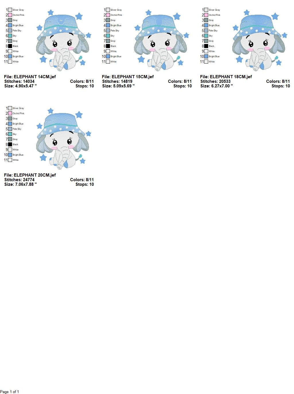 Baby Elephant with hat embroidery designs - Safari wild Animal with stars machine embroidery pattern - Baby boy file - Instant download pes