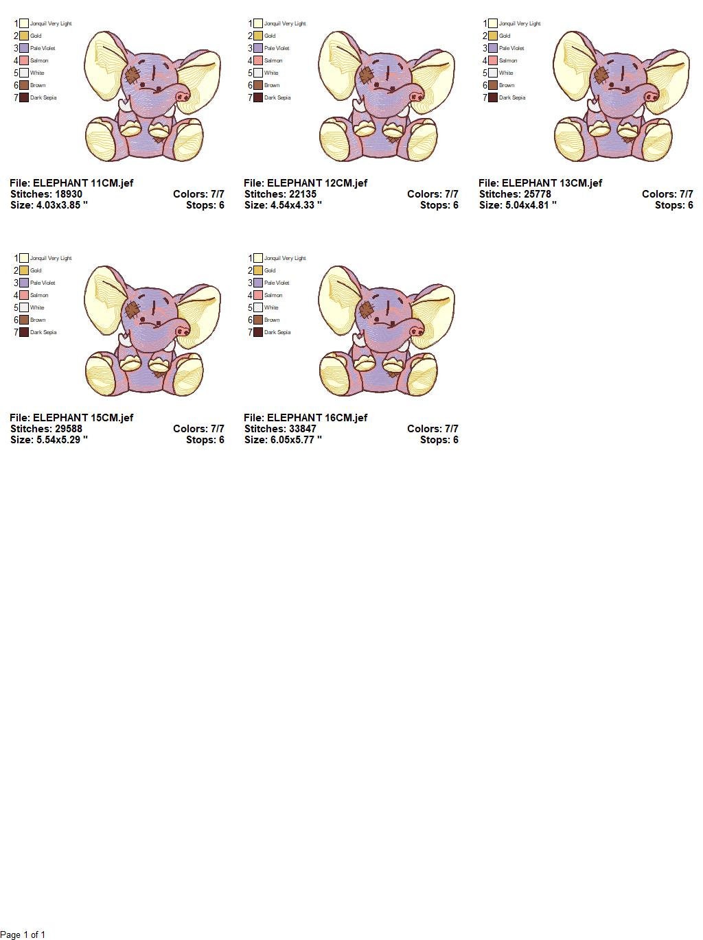 There are 5 sizes included, please check the information under the pictures for the precise sizes of each design, stitch count, color changes and etc.