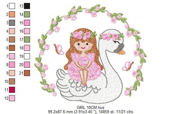 Fairy embroidery designs - Baby Girl embroidery design machine embroidery pattern - Swan embroidery file - Girl with flowers Digital file