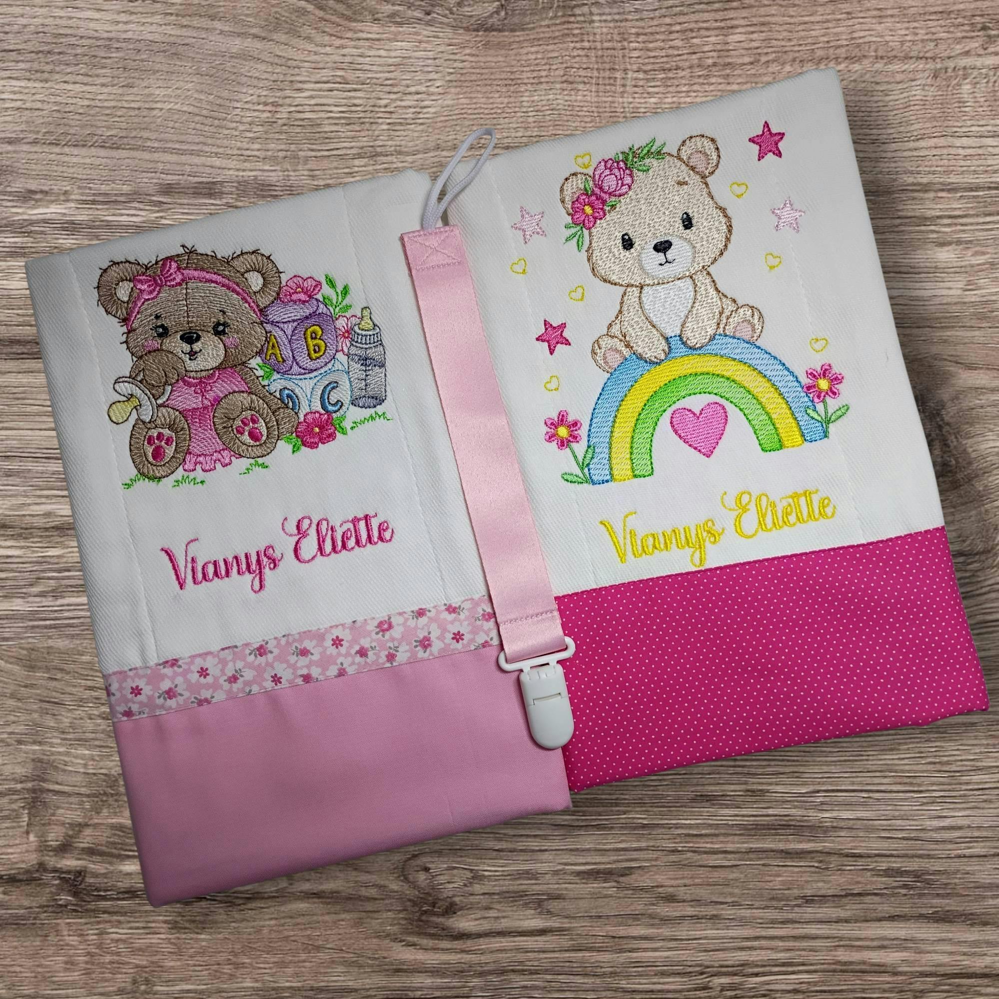 Female Bear with rainbow embroidery designs - Baby Girl Teddy with flowers machine embroidery pattern - Instant digital download pes jef dst
