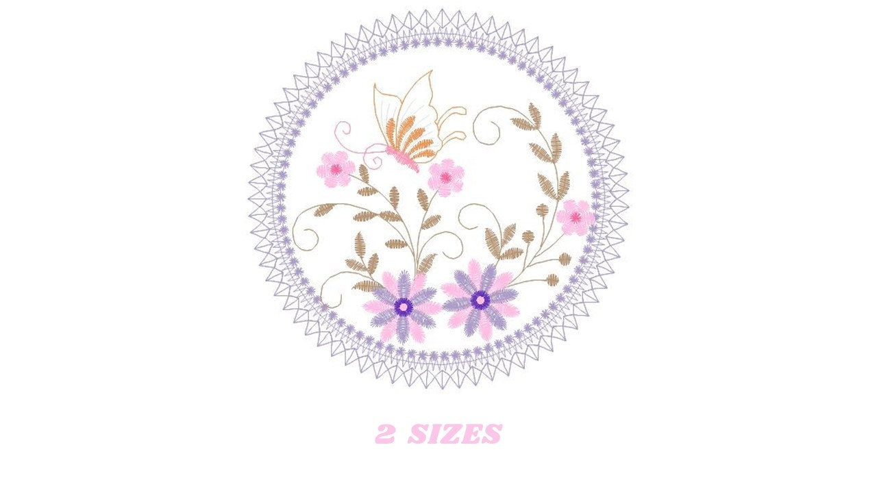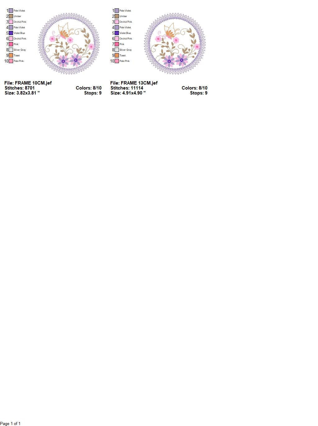 There are 2 sizes included for each design, please check the information under the pictures for the precise sizes of each design, stitch count, color changes and etc.