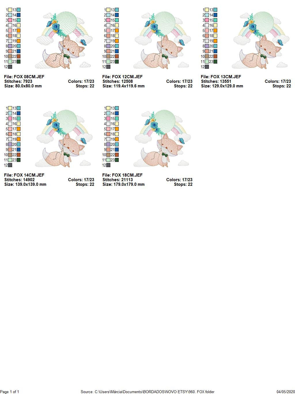 This is a digital download machine embroidery design of a FOX WITH BALLOONS, rippled design, instant download.