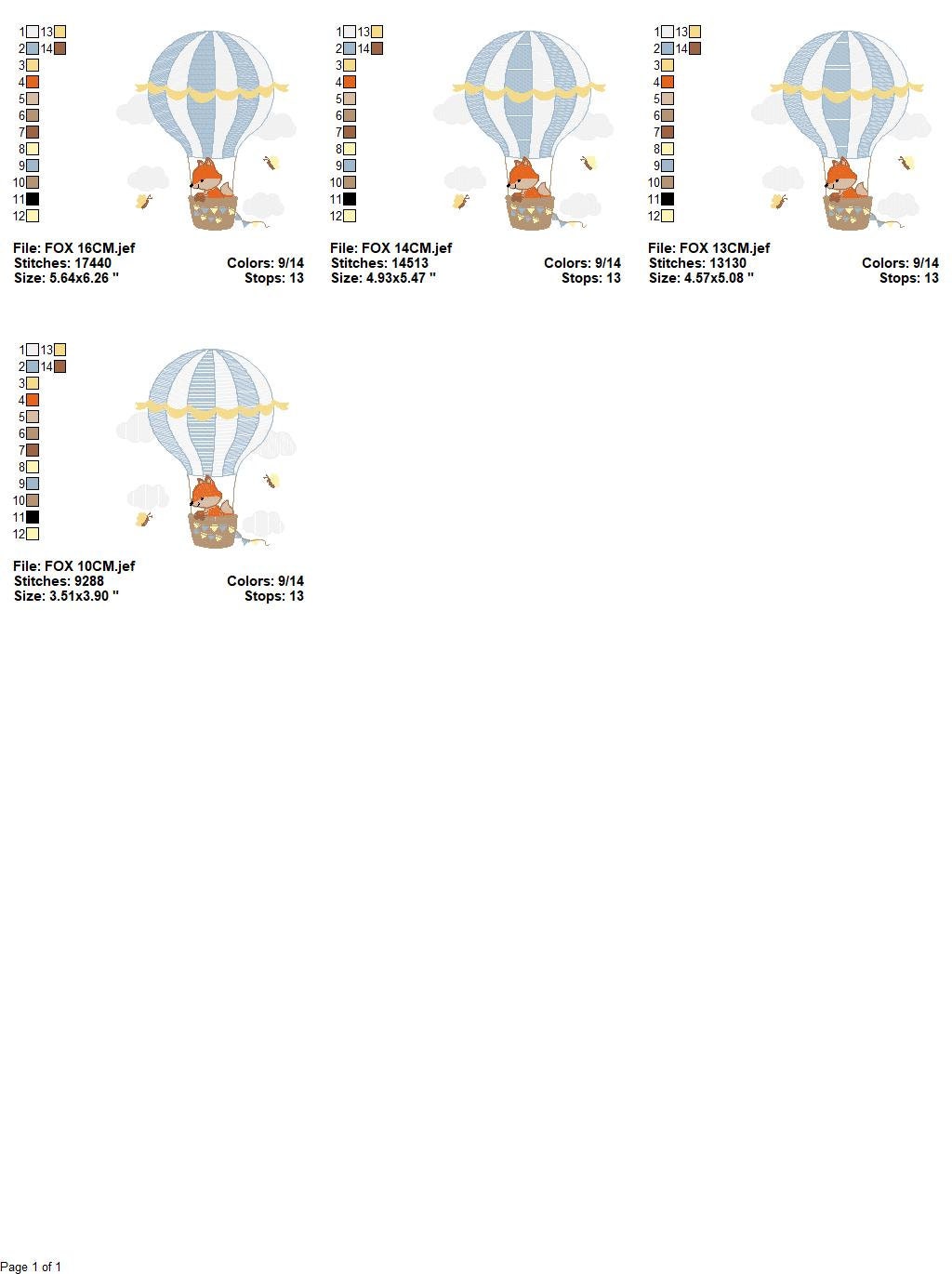 Fox embroidery designs - Hot air balloon embroidery design machine embroidery pattern - Animal embroidery file - woodland animals download