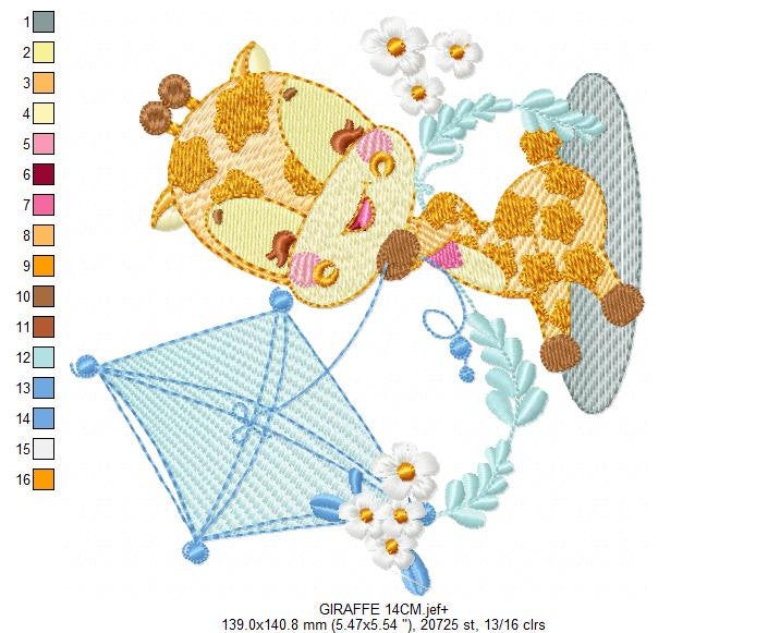 Giraffe embroidery design - Animal embroidery designs machine embroidery pattern - Baby boy embroidery file - Giraffe with kite kid children