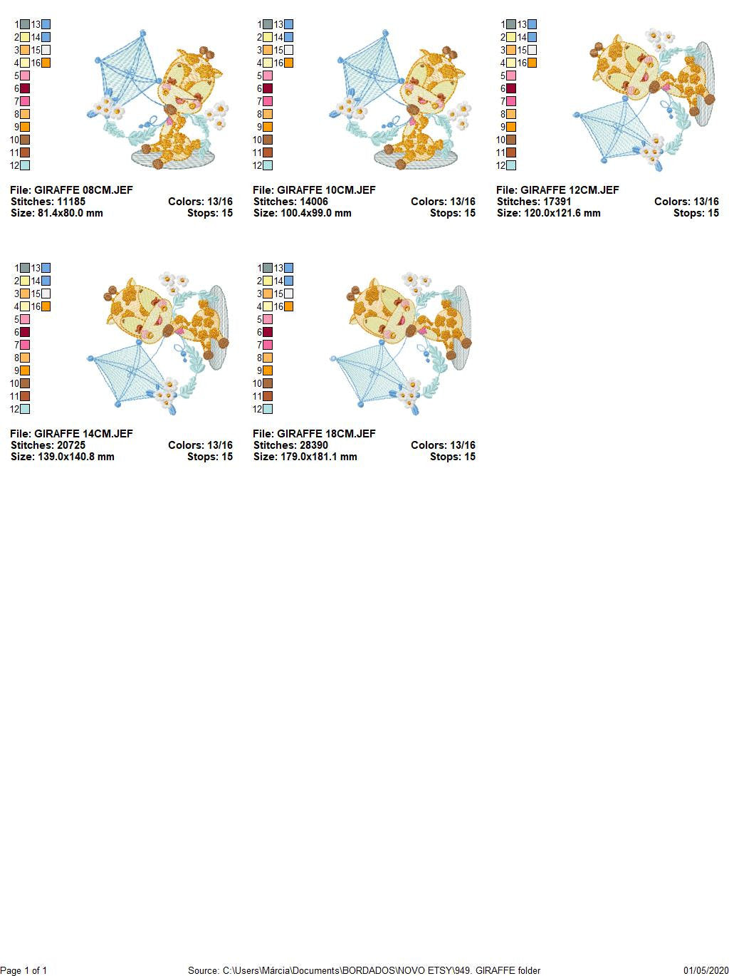 This is a digital download machine embroidery design of a set with a GIRRAFE, rippled design, instant download.