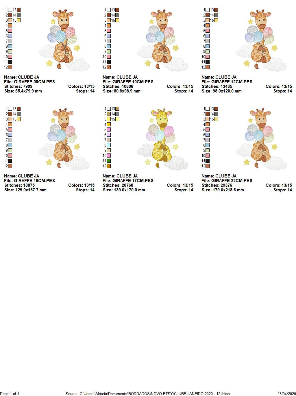 Giraffe embroidery design - Animal embroidery designs machine embroidery pattern - Baby girl embroidery file - Giraffe with balloons stars