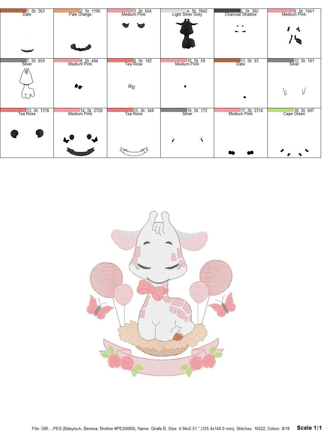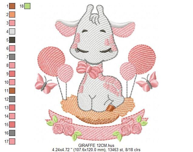 Giraffe with balloons embroidery design - Animal embroidery designs machine embroidery pattern - Girl embroidery file - instant download pes