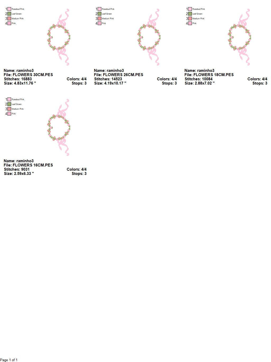 There are 4 sizes included, please check the information under the pictures for the precise sizes of each design, stitch count, color changes and etc.