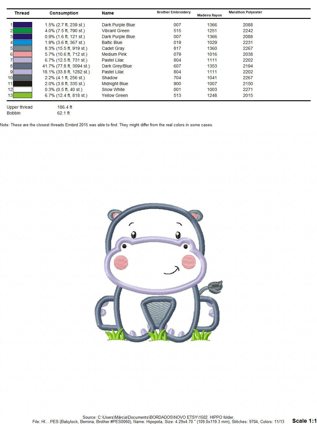 This is a digital download machine embroidery design of a HIPPO, applique design, instant download.
