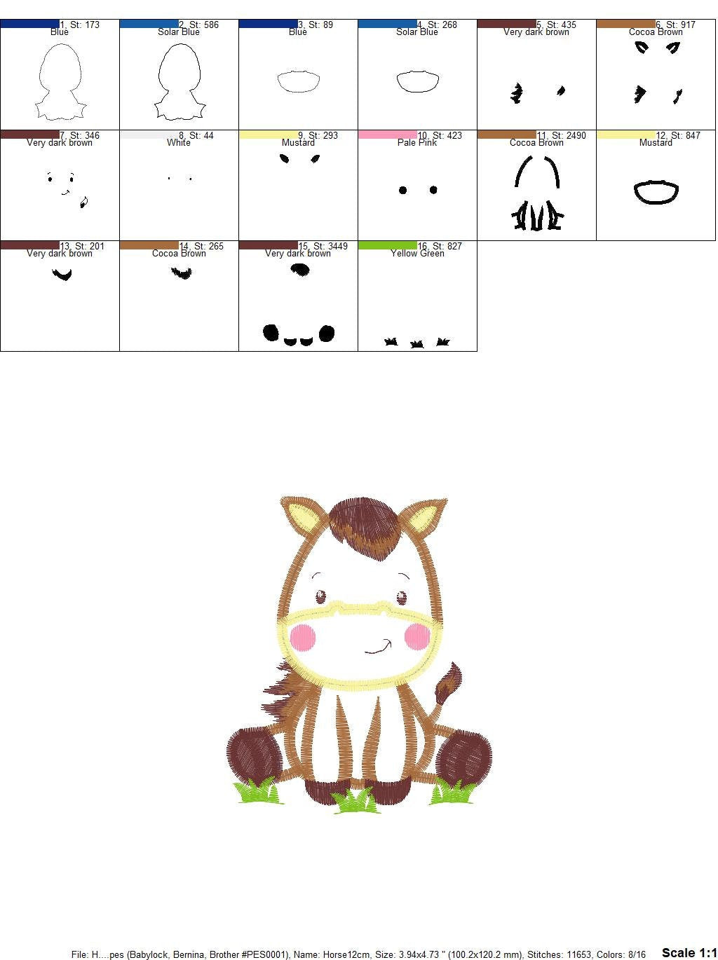 Horse embroidery design - Baby Boy Farm Animal machine embroidery pattern - Horse applique design - Instant digital download pes jef dst hus