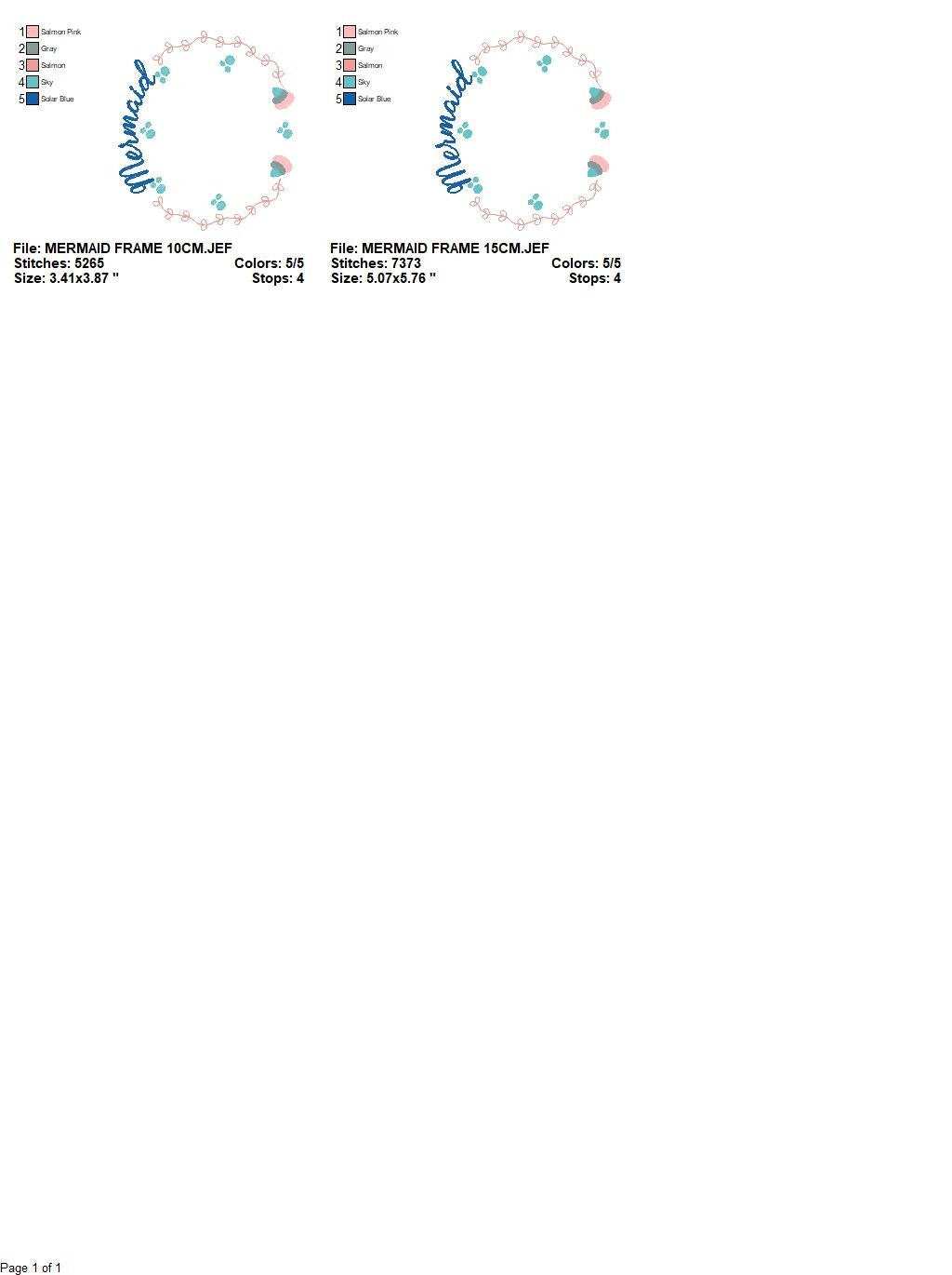There are 2 sizes included for each design, please check the information under the pictures for the precise sizes of each design, stitch count, color changes and etc.