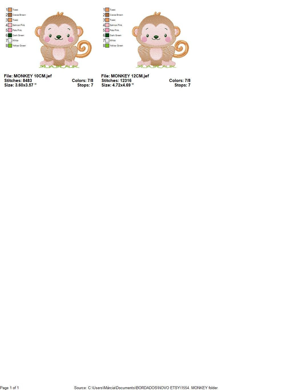 Monkey embroidery designs - Safari wild animal machine embroidery pattern - Baby boy embroidery file - Instant download pes jef dst vp3