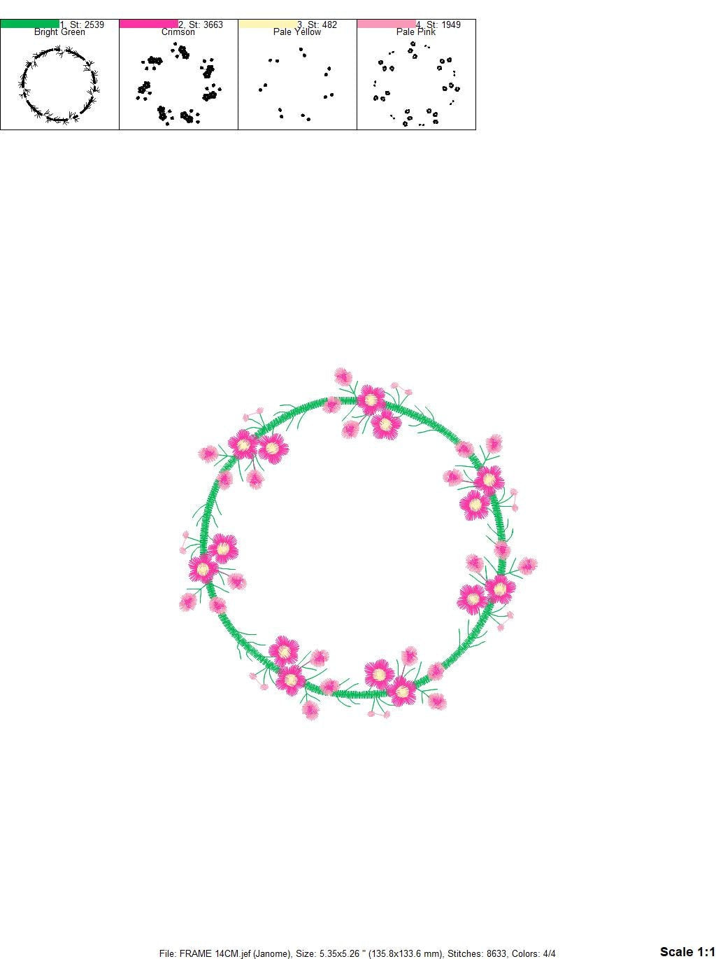 This is a machine embroidery design of a FRAME WITH FLOWERS, rippled design, instant download.
