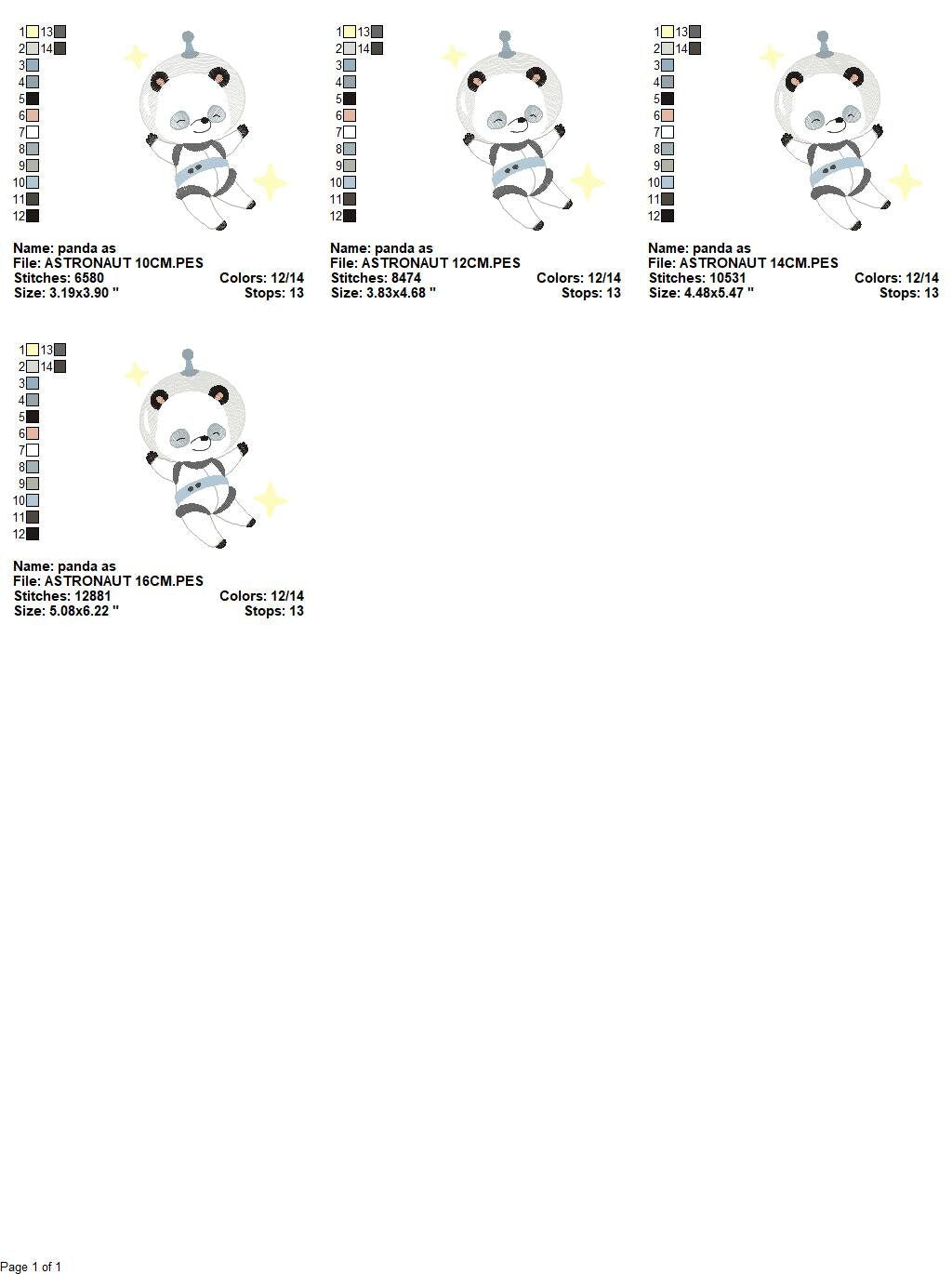 Panda Astronaut embroidery designs - Baby boy embroidery design machine embroidery pattern - instant download Space embroidery file Planet