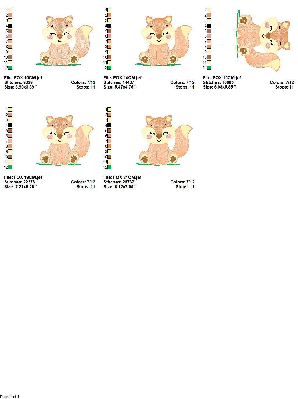 There are 5 sizes included for each design, please check the information under the pictures for the precise sizes of each design, stitch count, color changes and etc.