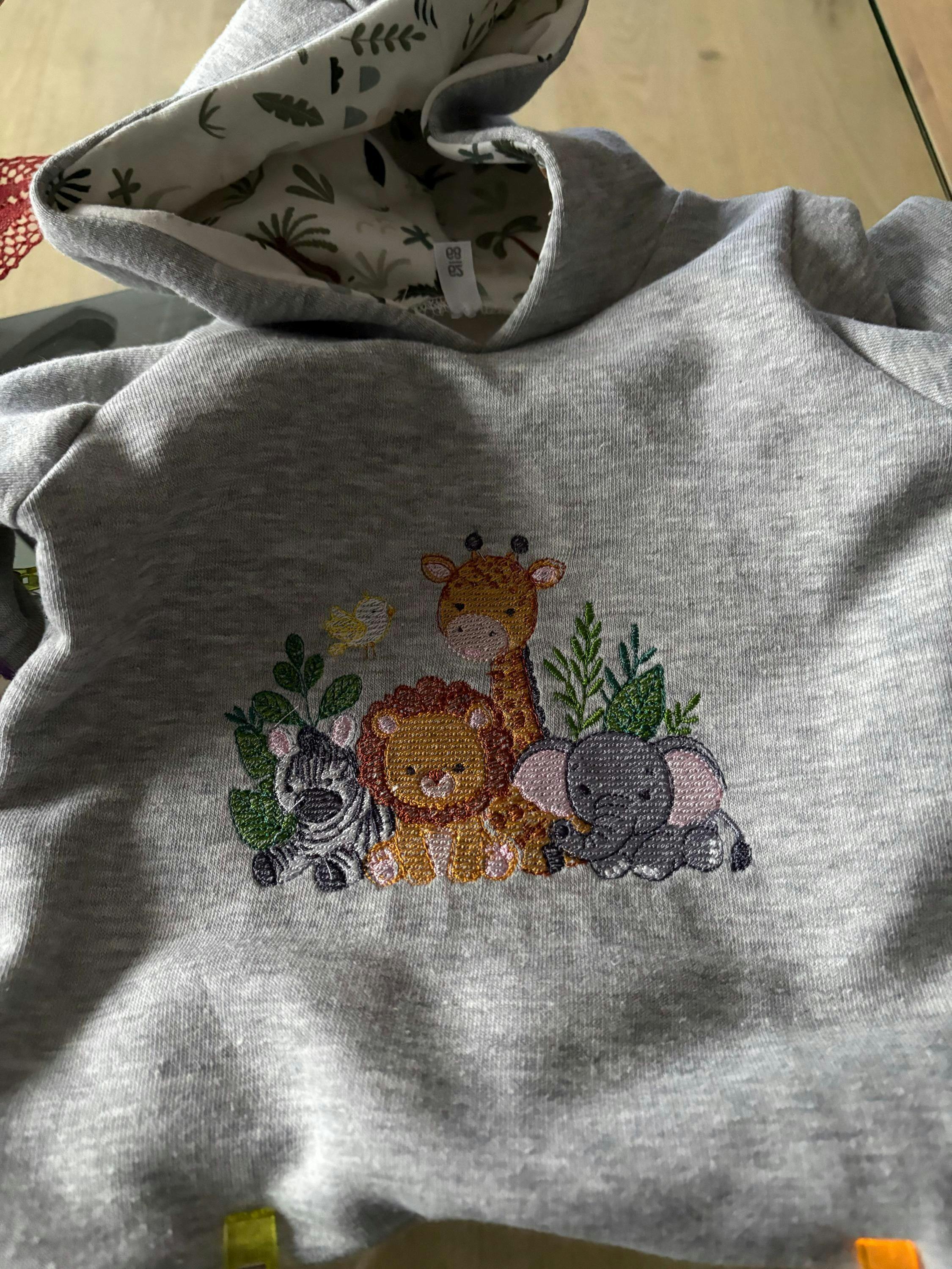 Safari animals embroidery designs - Elephant embroidery design machine embroidery pattern - Giraffe Zebra Lion tropical plants - download
